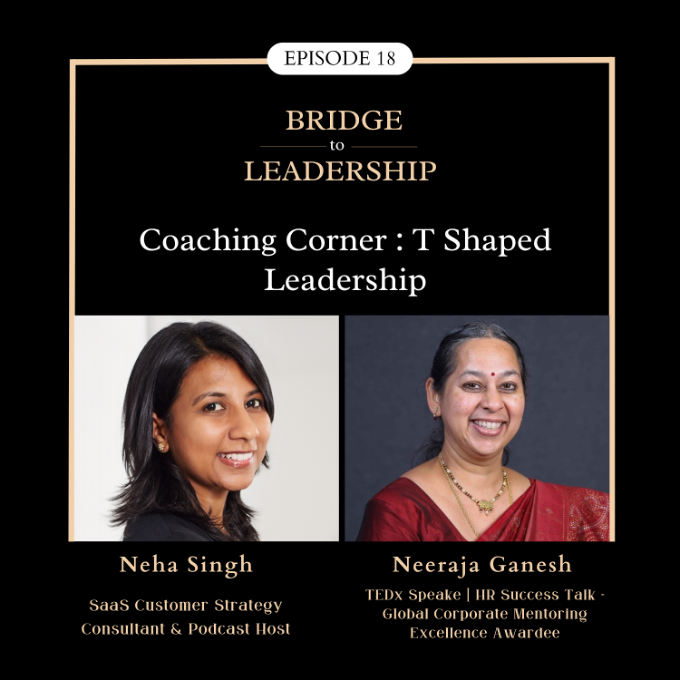 Neeraja Ganesh, Leadership trainer and coach, talks to Neha Singh about stepping out of domain expertise and exploring other dimensions of professional and personal life in order to become impactful leaders. Listen to her insightful advice around how to develop T Shaped skills, how to make time to explore areas outside of immediate work requirements and how to find balance.